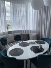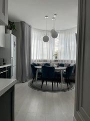 Современная 3-евро квартира с дизайнерским ремонтом в прекрасном зеленом обжитом районе. Квартира светлая и уютная с полукруглыми эркерами с большими окнами в 2 комнатах. Просторная кухня-гостиная, большая детская, мастер-спальня с небольшим балконом, два санузла, просторная прихожая.