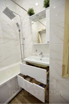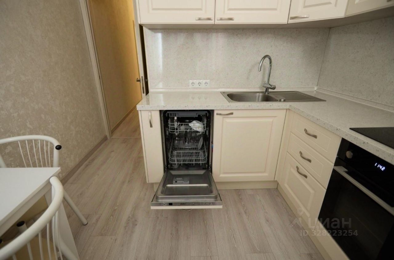 Кухня полностью укомплектована: электроплита на 3 конфорки, духовой шкаф, посудомоечная машина (45 см), вытяжка, холодильник, фильтры для питьевой воды. Санузел совмещенный: душевая система, стиральная машина, теплый пол. Балкон — дополнительное пространство.