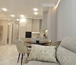 Продуманное планировочное решение квартиры выделяет её из множества квартир в Зиларте. Несмотря на небольшой размер общей площади, удалось разместить три спальни, большую кухню-гостиную, два санузла, прачечную, гардеробную. Ремонт делали для себя, покупали дорогостоящие отделочные материалы. Мебель встроенная изготовление под заказ. Мягкая мебель премиум производства. Квартира светлая и очень уютная. В квартире два взрослых собственника. Собственность более трёх лет. Без обременений. Свободная продажа. Вся стоимость в дкп. Быстрый выход на сделку.
