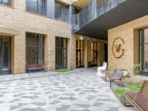 Фасады жилого комплекса отделаны натуральным камнем, эксклюзивные входные группы, немецкие скоростные лифты, подземный паркинг, закрытый ландшафтный внутренний двор без машин.