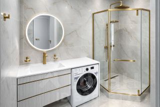 В ванной комнате установлена вся сантехника GROHE, Итальянская душевая, стиралтеая машинка с отпариванием и подготовкой под глажку. В ванне имеется большое место для хранения над инсталяцией.