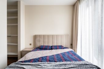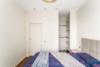 В спальне имеется вместительная гардеробная, которая решает все вопросы по хранению вещей.
