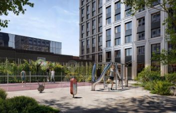 Во дворе комплекса "НАЗАРЕ'" будут места как для спокойного отдыха и работы, так и для игр и спорта. Здесь организованы игровые площадки для детей всех возврастов, места для стритбола и тенниса, а также зона с природным ландшафтом и коворкинг с экологичной деревянной мебелью.