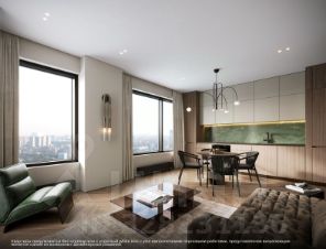 • дизайнерские лобби от бюро ABOVE ARCHITECTURE с панорамными окнами, интерьерами в теплой цветовой гамме и мягкой зоной ожидания располагаются в каждой башне;