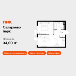 Продаётся 1-комн. квартира площадью 34,6 кв.м на 8 этаже 16 этажного дома (Корпус 57.1, Секция 1) проекта ПИК Саларьево парк. Светлый просторный подъезд на уровне земли, функциональная планировка, большие окна, предчистовая отделка.