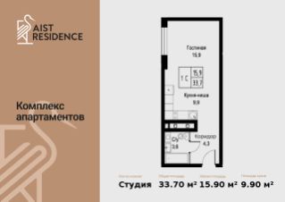 Продается студия площадью 33.70 кв.м. на 13-м этаже 30 этажного дома в "AIST RESIDENCE" от ГК МонАрх.