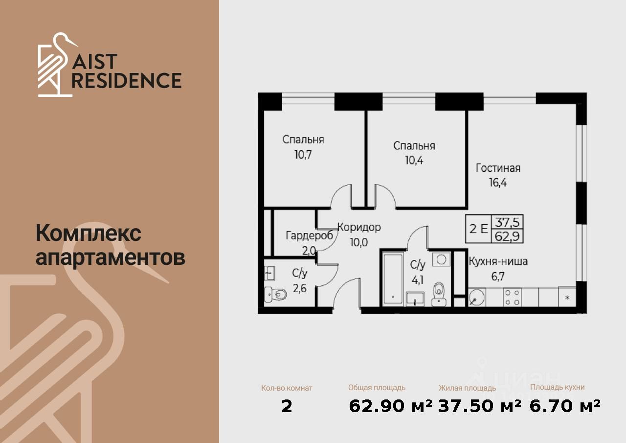 Продаются 3-к апартаменты площадью 62.90 кв.м. на 21-м этаже 30 этажного дома в "AIST RESIDENCE" от ГК МонАрх.