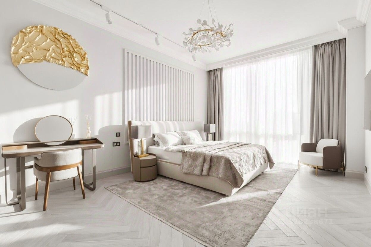 Функциональная планировка: кухня-гостиная с островом, 3 изолированные комнаты (включая мастер-спальню с гардеробной и ванной), дополнительная гардеробная, постирочная, гостевой санузел и полноценная ванная комната.