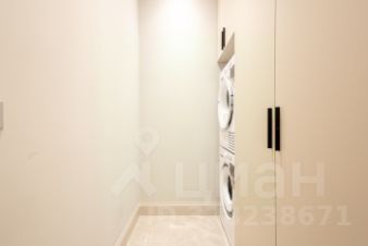 Отдельная постирочная зона оборудована стиральной и сушильной машинами ASKO. В квартире установлены современные телевизоры, часть техники и предметов интерьера — новые, в заводской упаковке. Пространство тихое и приватное благодаря ориентации окон во двор.