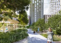 Высотные здания "Метрополии" образуют благоустроенное дворовое пространство на 4,6 га, которое украсят более 400 деревьев и несколько сотен кустарников, живописные цветочные клумбы и аккуратные газоны.