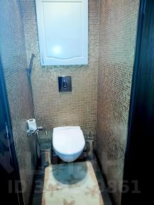 Стены в туалете и ванной- красивая мозаика. Подвесной унитаз. Гигиенический душ.