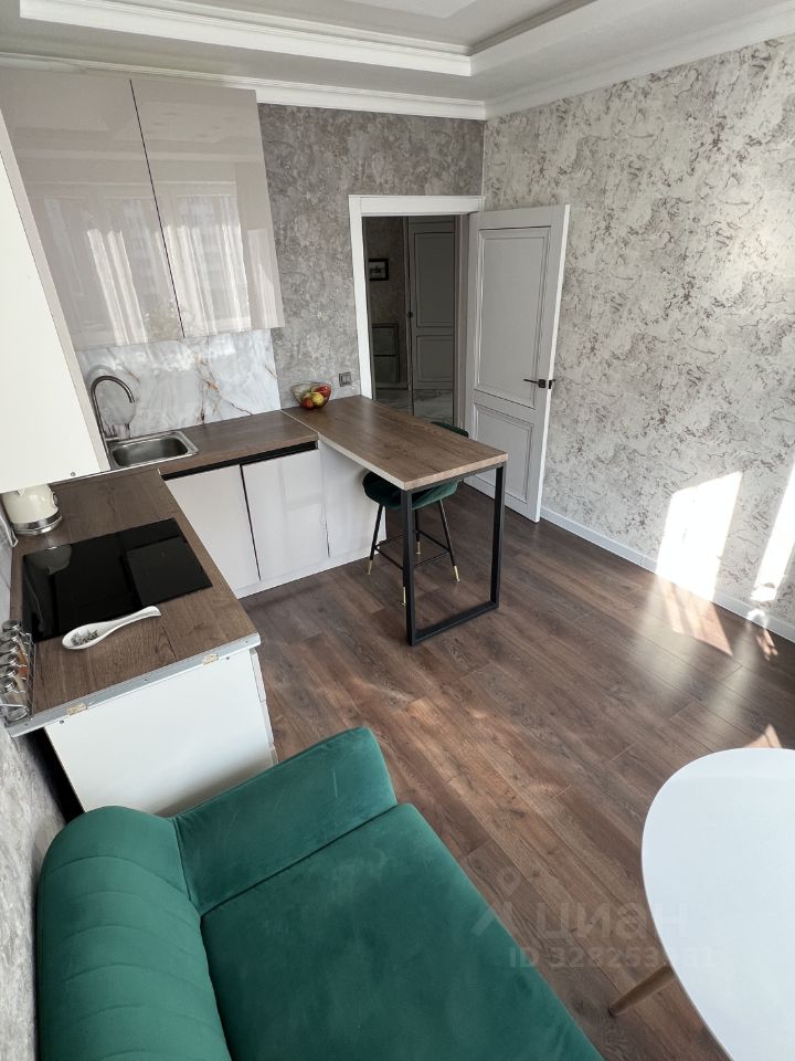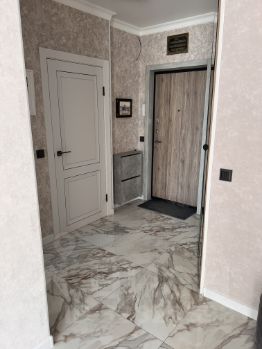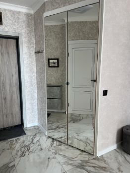 Общая площадь — 40,5 кв.м., кухня — 12,5 кв.м., жилая комната — 18,4 кв.м., прихожая — 3,6 кв.м., санузел совмещенный, имеется встроенный шкаф с зеркальными дверьми. Выполнен светлый ремонт с использованием качественных материалов.