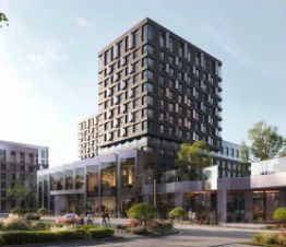 Четыре разноуровневых урбан-блока высотой 2, 6, 9 и 14 этажей с закрытым дворовым пространством, с подземным паркингом и террасами.
