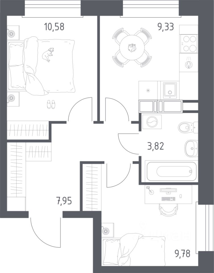 Продаётся 2-комнатная квартира в строящемся доме (Корпус 14.2), срок сдачи: I-кв. 2027, общей площадью 41.46 кв.м., на 5 этаже. Если вы мечтаете о доме в пешей доступности от метро и вблизи живописных лесопарков — переезжайте в "Эко Бунино". Жилой комплекс находится в Новой Москве, поэтому вы получите московскую регистрацию, столичные льготы и социальные выплаты.