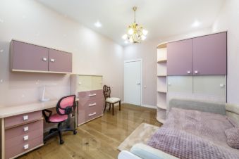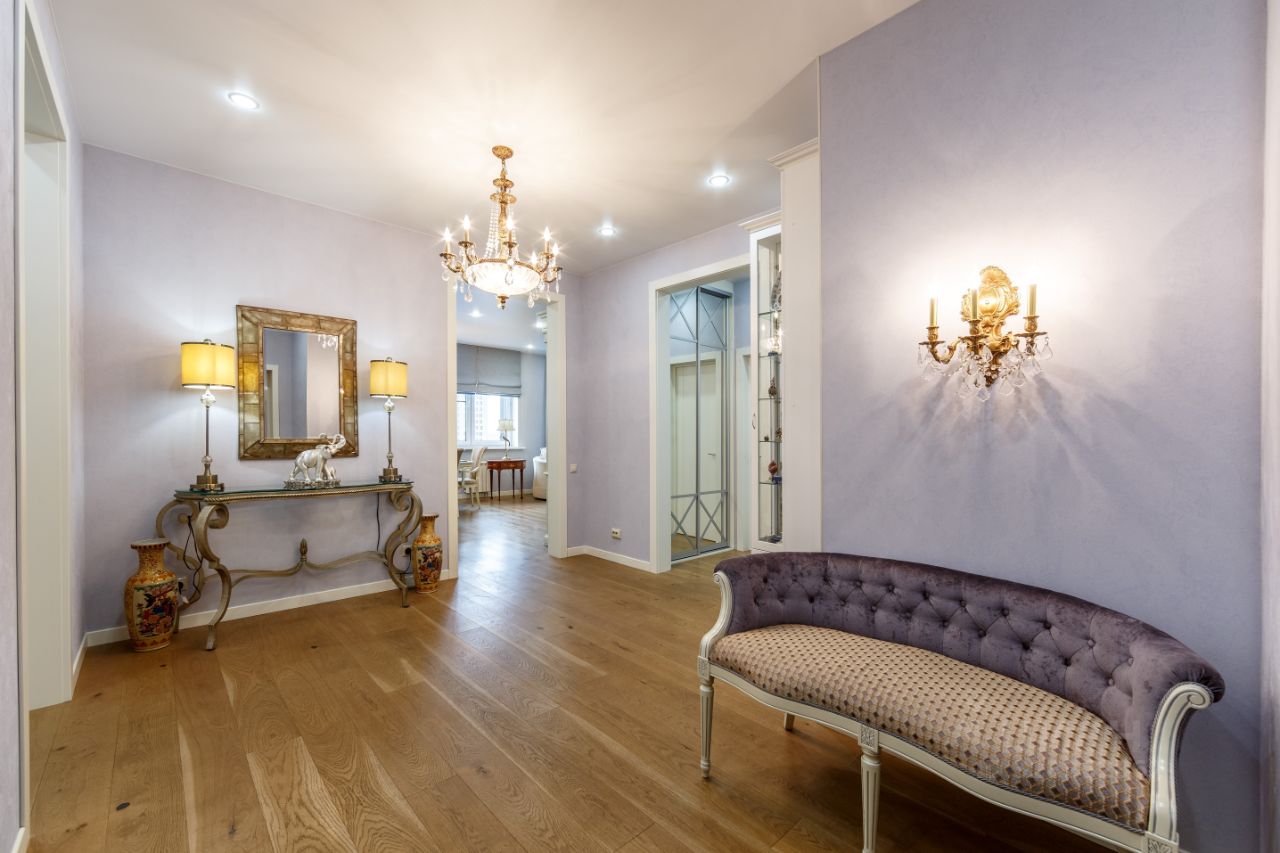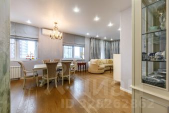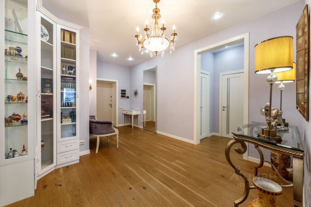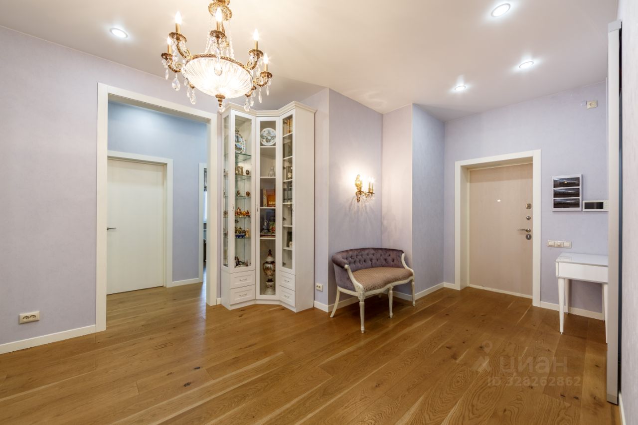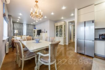 Квартира расположена на 17 этаже 28-этажного монолитного дома, общая площадь составляет 139,4 кв.м. Семейная квартира с прекрасно продуманной и функциональной планировкой: просторной кухней-гостиной (37,5 кв.м.), мастер-спальней и кабинетом с выходом на большую лоджию с панорамным остеклением и видами на реку, двумя детскими спальнями, двумя ванными комнатами, постирочной и большим холлом. Две гардеробные, встроенные шкафы и системы хранения.