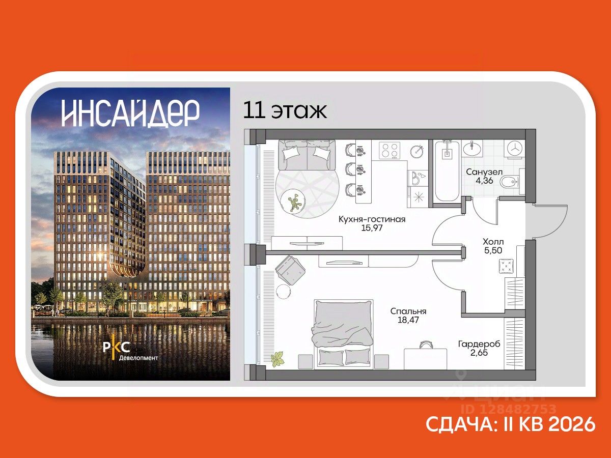 Агентам не звонить. Просторный лот с 1 спальней в Доме на набережной Инсайдер. Сервисные лоты с системой "умный дом" на первой линии Москвы-реки.