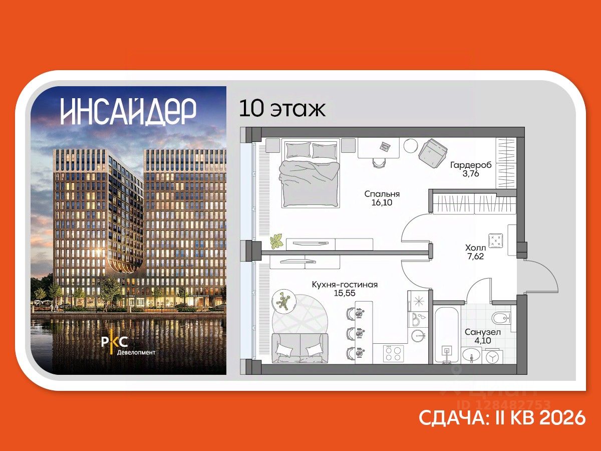 Агентам не звонить. Просторный однокомнатный лот в Доме на набережной Инсайдер. Сервисные лоты с системой "умный дом" на первой линии Москвы-реки.