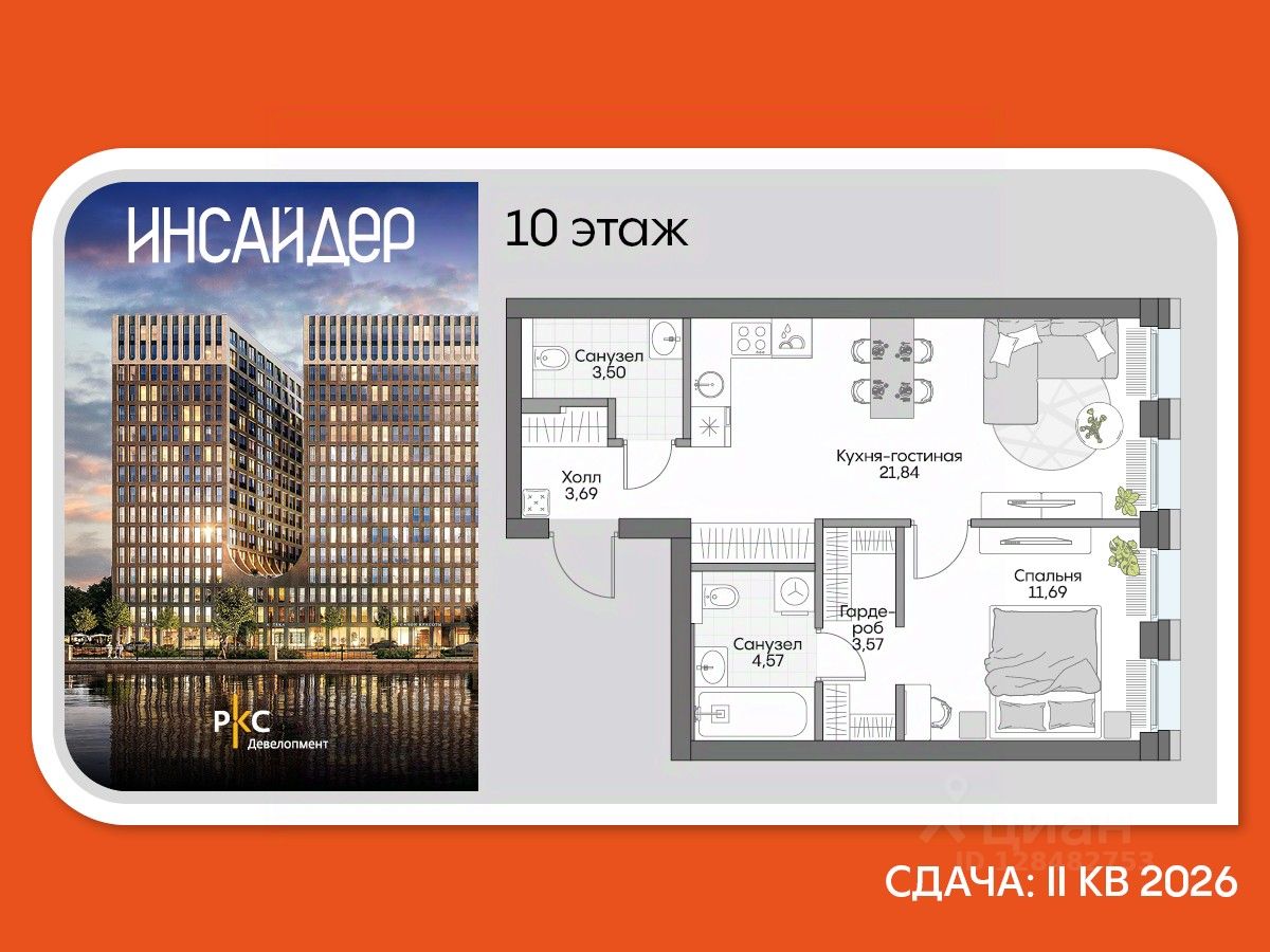 Агентам не звонить. Просторный однокомнатный лот в Доме на набережной Инсайдер. Сервисные лоты с системой "умный дом" на первой линии Москвы-реки.