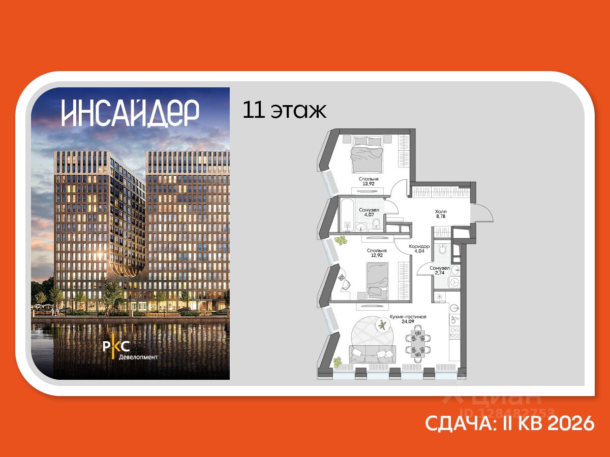 Агентам не звонить. Просторный двухкомнатный лот с отделкой премиум-класса от застройщика в Доме на набережной Инсайдер. Сервисные лоты с системой "умный дом" на первой линии Москвы-реки.