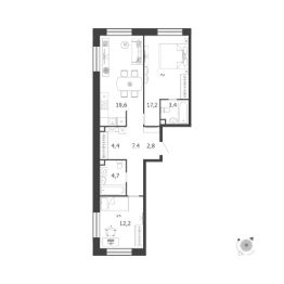 Продаётся 2-комнатная квартира в строящемся доме (Корпус 9 (3 очередь)), срок сдачи: IV-кв. 2026, общей площадью 71.7 кв.м., на 10 этаже. Это город в городе, который не подстраивается под старые рамки, а задает новую планку и стандарт жилого района в России.