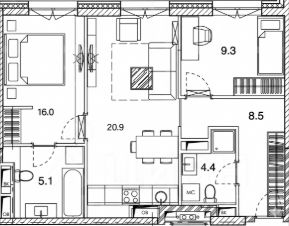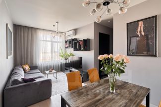 Сердце апартаментов - просторная кухня-гостиная, идеально подходящая как для тихих семейных вечеров, так и для приема гостей.