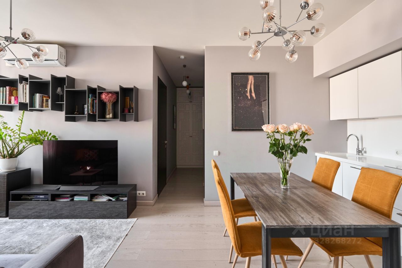 Главная деталь интерьера - панорамный вид на башни Москва-Сити, который открывается прямо с вашего дивана. Это идеальное пространство для тех, кто ценит эстетику, время и статус.