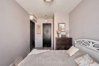 В отделке использованы премиальные материалы, установлена современная техника и продуманы сценарии освещения. Интерьер выполнен в лаконичном стиле, что позволяет легко добавить индивидуальные акценты. Множество встроенных шкафов с системами хранения.