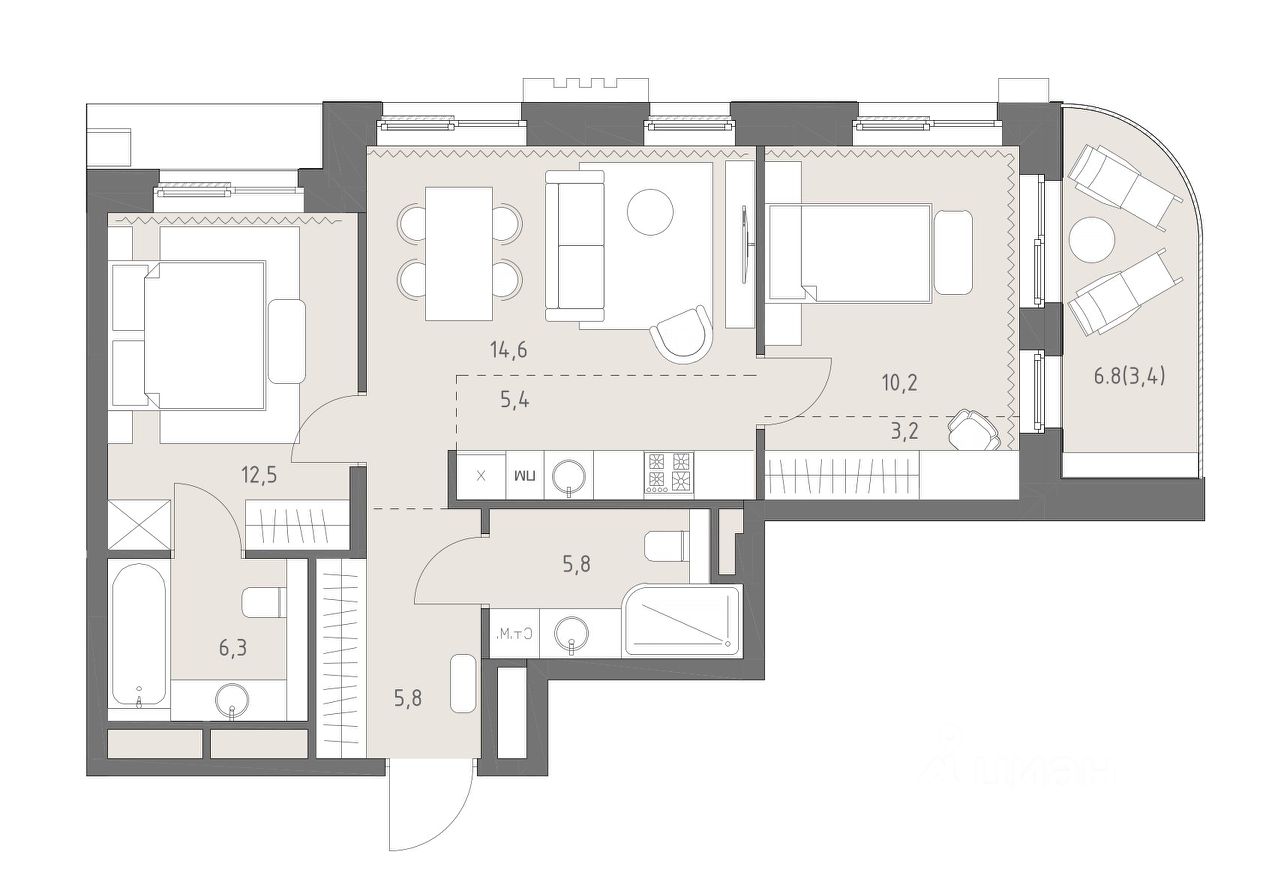 Продуманная европланировка, которую легко зонировать под ваши запросы. Потолки от 3,1 м.