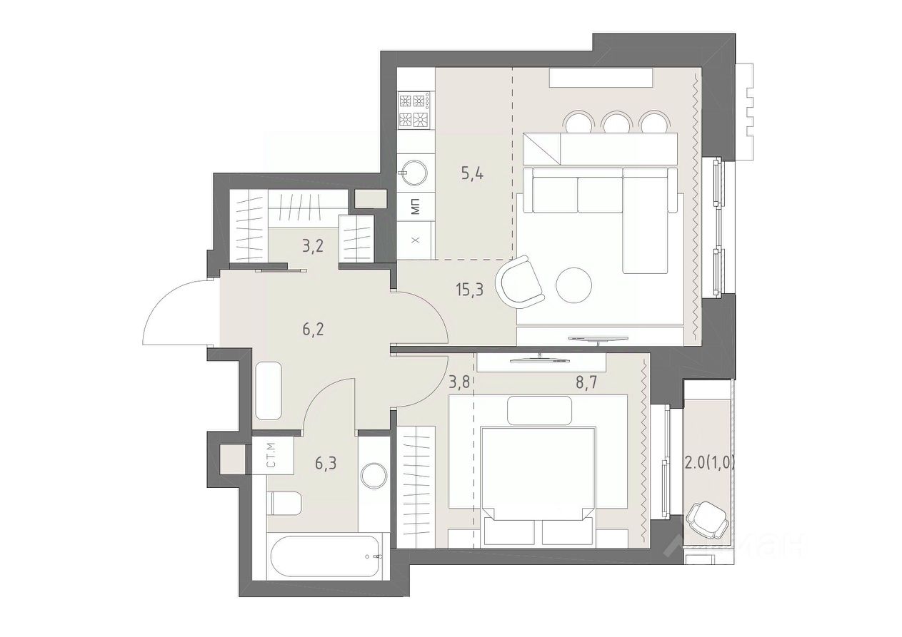 Продуманная европланировка, которую легко зонировать под ваши запросы. Потолки от 3,1 м.