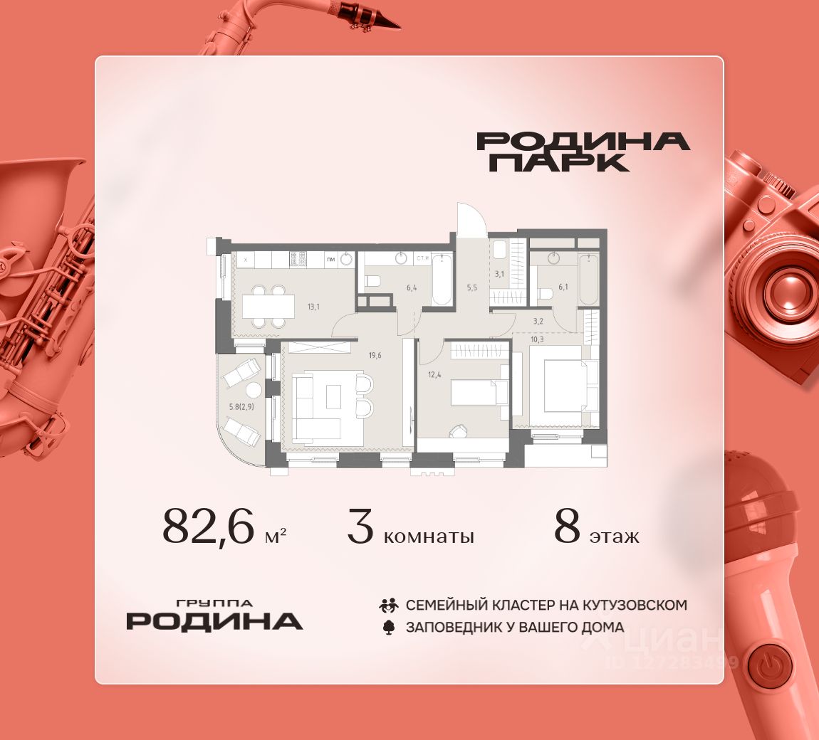 В жилом кластере Родина Парк рядом с природным заказником Долина реки Сетунь продаётся 3-комнатная квартира. Продуманная европланировка, которую легко зонировать под ваши запросы. Потолки от 3,1 м. "Родина Парк" — премиальный семейный кластер с образовательным медиакластером, строящийся на западе Москвы в окружении природного заповедника "Долина реки Сетуни". • Скидки недели на избранный пул лотов • Рассрочка 0% на выгодных условиях до 2 лет • Семейная ипотека, подбор комбо-вариантов ипотечных программ прямо в офисе продаж • Скидки 8% при 100% оплате или ипотеке. ЛОКАЦИЯ: 8 минут пешком до станции БКЛ "Давыдково". 12 минут на автомобиле до Нового Арбата. Удобные выезды на Кутузовский проспект, Аминьевское шоссе. ИНФРАСТРУКТУРА И СЕРВИСЫ ДЛЯ ЖИТЕЛЕЙ - Уникальная экосистема для развития, здоровья и творчества на территории 3,5 Га: - Первый в России образовательный медиакластер (с участием Русской медиагруппы) для творческого развития детей и взрослых с возможностью получить востребованную профессию в сфере шоу-бизнеса. - Инфраструктура и сервисы для семей с детьми на территории жилого кластера (частный детский сад, детские игровые пространства, творческие студии для занятий музыкой и танцами, безопасная и комфортная среда для детей и родителей), событийно-культурная площадка для проведения семейного досуга); - Здоровая среда (биохакинг-центр, фитнес-зал и спортивная инфраструктура во дворе, медитационные пространства, инженерные решения для освещения, свежего воздуха и очистки воды, сервисы красоты и поддержания активного долголетия); - Сервисы заботы (инфраструктура комфорта - подземный паркинг, кладовые, колясочные, консьерж- сервис, умный дом, мобильное приложение, профессиональная управляющая компания, сервисы охраны и обеспечение абсолютной безопасности) - Комьюнити резидентов (социальные пространства для дружеского и делового общения - летний атриум с уличным кинотеатром, зоны отдыха, кафе и рестораны, комьюнити-сервис с культурно- событийной программой в медиакластере); - Модуль благосостояния (комфортные пространства для работы и саморазвития - коворкинги и переговорные). ИНФРАСТРУКТУРА РАЙОНА: Насыщенная образовательная среда: филиалы МГИМО, МГУ, МГТУ, Сколково. Топовые школы: 6 лучших частных школ Москвы и области (Forbes) в 10 минутах езды. Природное окружение для пеших прогулок, спорта и отдыха. "Родина Парк" — это место, где растут и дети, и ваши возможности. Экосистема, где всё подчинено развитию — физически, профессионально, творчески.