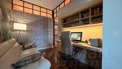 Отдельно стоит отметить наличие зимнего сада, двух полноценных санузлов, мастер-спальни с гардеробной комнатой и рабочего кабинета. Вся мебель и предметы декора остаются покупателю.