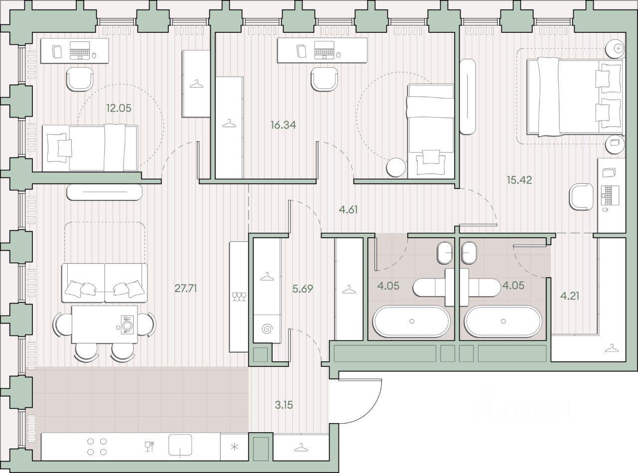 Продаётся 3-комнатная квартира общей площадью 97.28 кв.м. с отделкой white box. Квартира расположена на 38 этаже корпуса 4.1 в жилом комплексе бизнес-класса "Среда на Кутузовском" в пешей доступности от метро "Кунцевская".