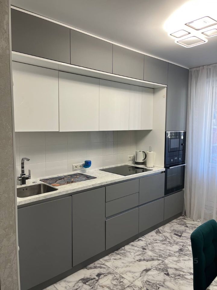 КУХНЯ оснащена современным трехуровневым гарнитуром с обилием шкафов и секций.