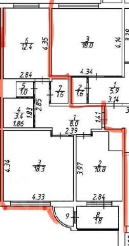 О КВАРТИРЕ. Общая площадь 55,5 м2 без учета балкона. Комнаты изолированы 18,3м2, 12,4 м2 кухня 10,8 м2 с двойным застекленным балконом, с/у раздельный, встроенный шкаф, просторная прихожая. Высота потолков 265см.