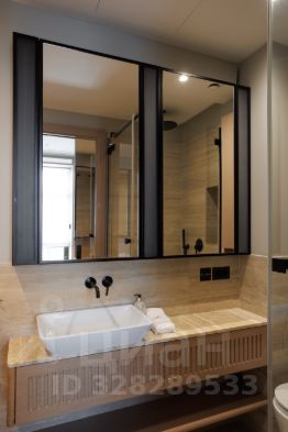 Второй (гостевой с/у) с раковиной из камня и зеркалами. Встроенный шкаф для мелочей.