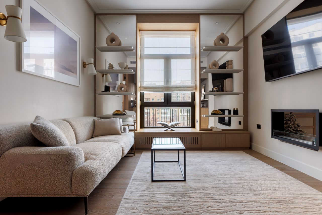 Элитные апартаменты с камином в клубном доме Синатра. Это исторический центр Москвы - Тишинская площадь.