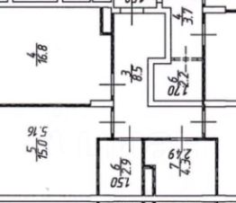 Площадь кухни 17 метров, комнаты 15 метров и 13,5 метров.