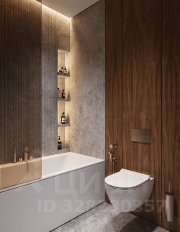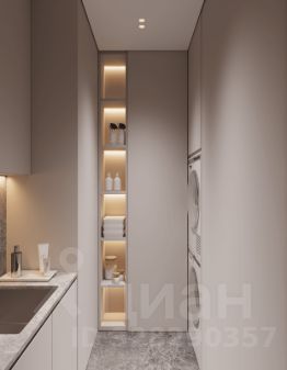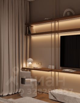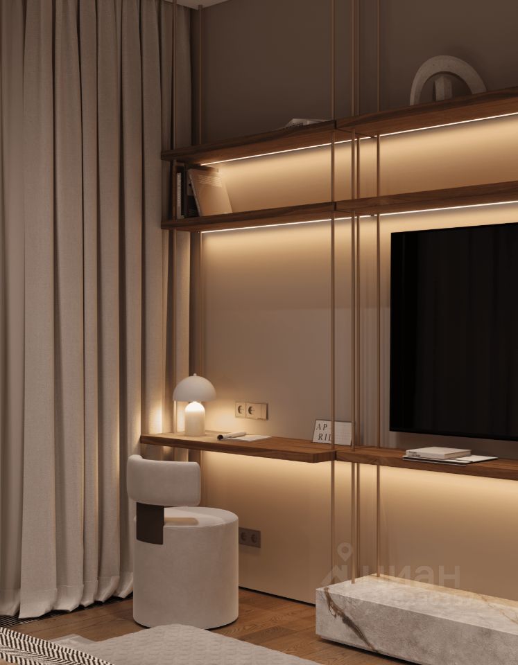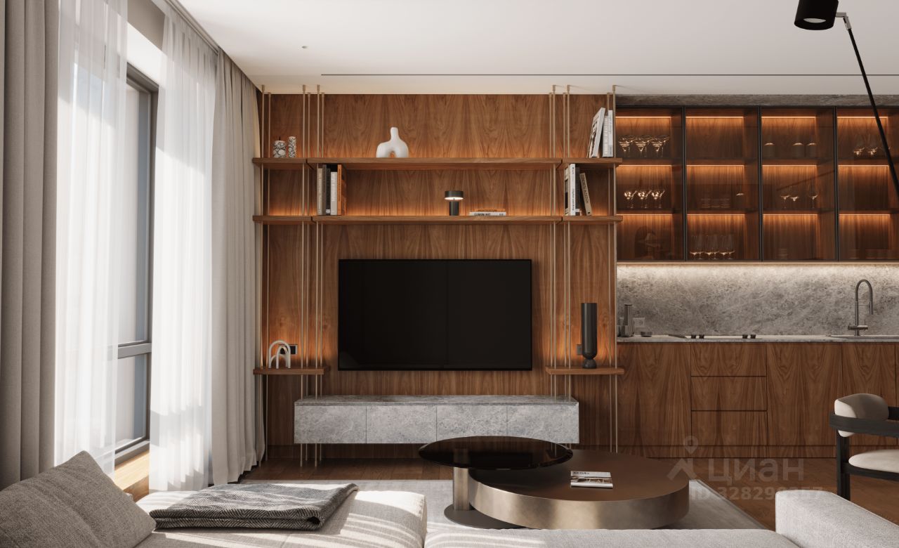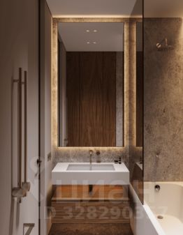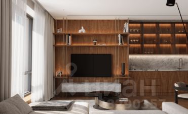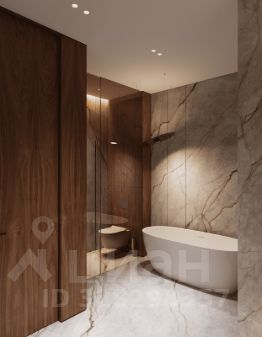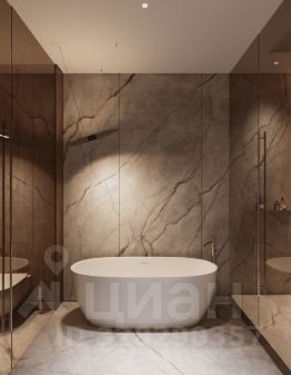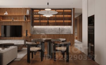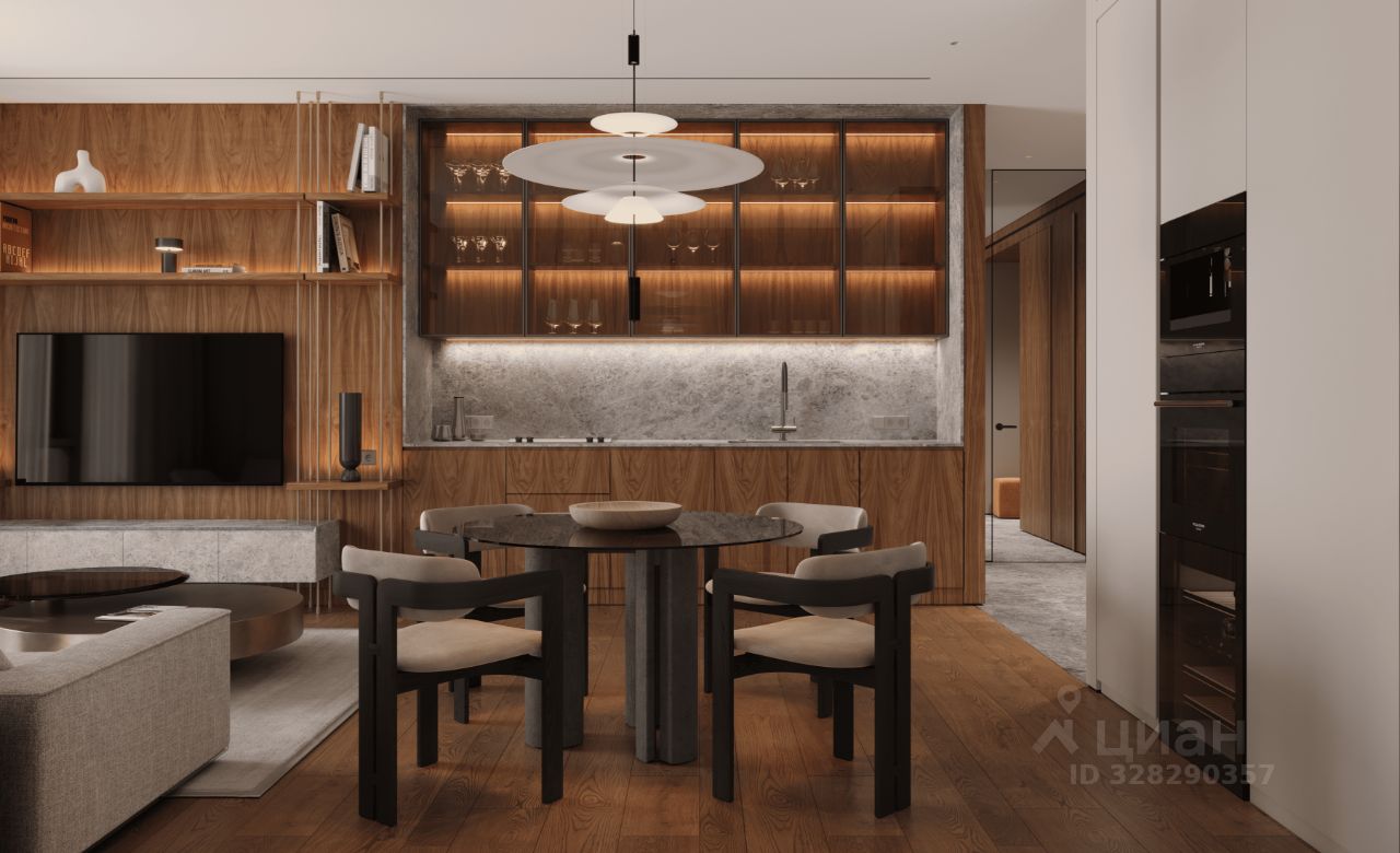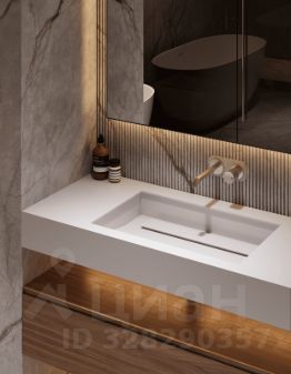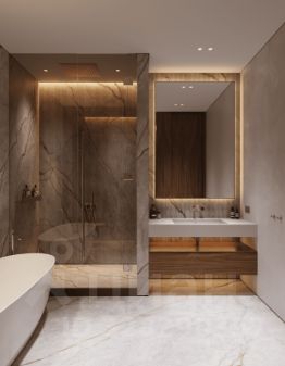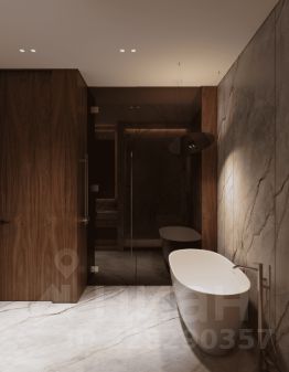 В квартире выполнена премиальная дизайнерская отделка с использованием высококачественных и натуральных материалов, таких как: натуральный мрамор, шпон дуба, декоративная штукатурка.