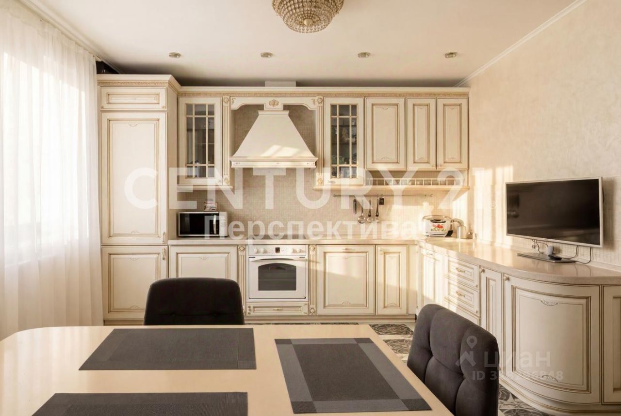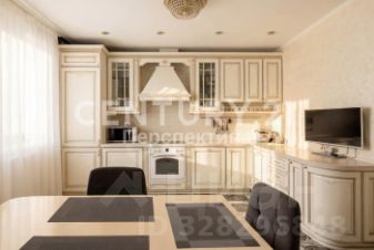 Квартира полностью готова к проживанию. Ремонт выполнен с использованием исключительно дорогостоящих материалов. Мебель, изготовленная на заказ, идеально вписывается в пространство, а массивные белые двери добавляют элегантности.