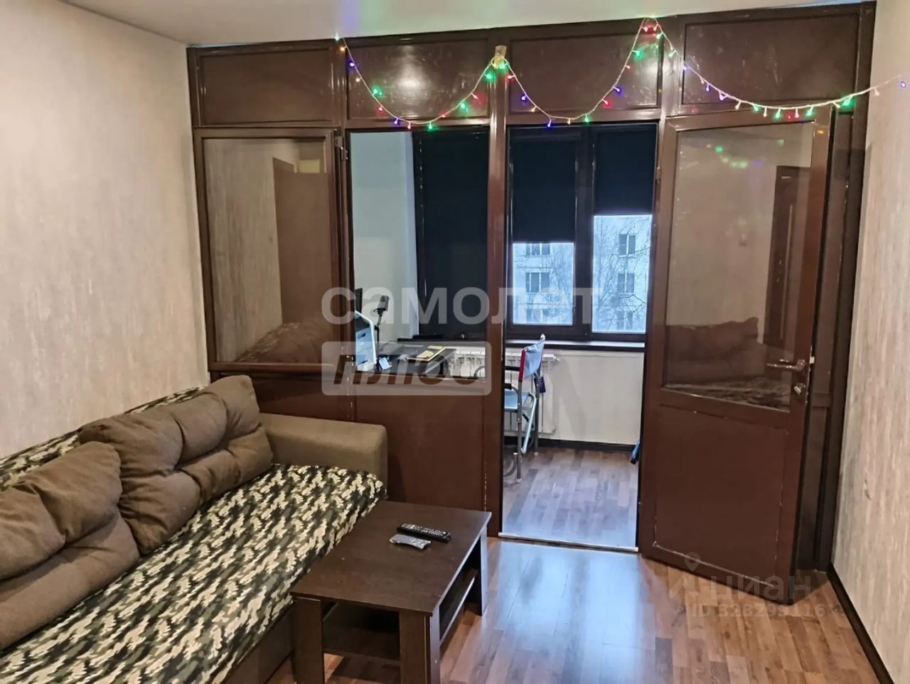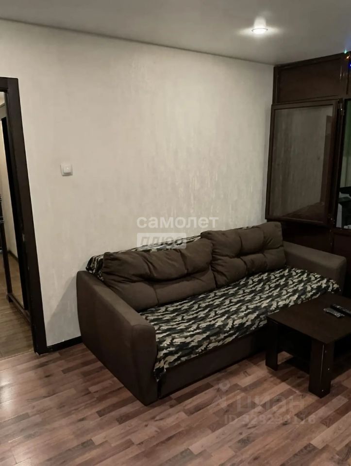 В гостиной установлен большой шкаф купе во всю стену и диван еврокнижка 160 см шириной, а также телевизор Full hd Shivaki 99см со смарт приставкой. А также из гостиной легким пластиком выделен кабинет, который мужчины обычно делают себе на балконе. Габариты кабинета 130х300см. Кабинет закрывается, в нем есть жалюзи изнутри . В кабинете есть диван-кровать 120 см шириной, аудиосистема Sven 20 Ватт, монитор Philips 58 см, МФУ цветное лазерное Brother dcp-9020cdw. Ноутбук Lenovo по договорённости.