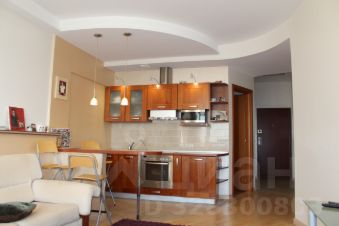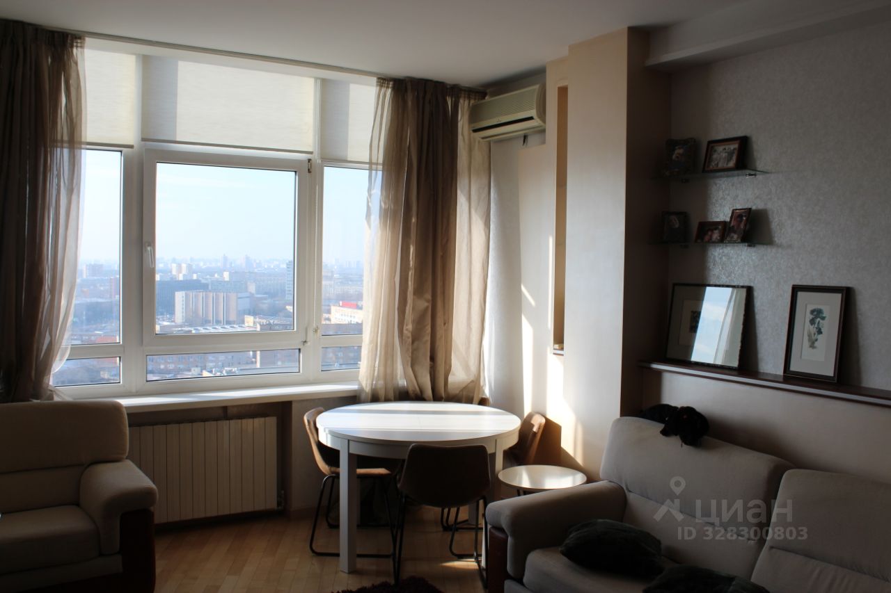 Площадь квартиры 50,5 кв.м (по факту двухкомнатная квартира). Просторная гостиная-столовая и изолированная спальня с лоджией, откуда открывается потрясающий вид на Москву. Лоджия утеплена, тройные немецкие стеклопакеты, теплый пол. Функциональная встроенная кухня - с холодильником, посудомоечной машиной, электроплитой, оснащена современной барной стойкой. В комнате панорамные окна, высота потолков 3 метра, что делает комнату просторной и светлой. В квартире комбинированное освещение. Внушительный холл с огромным шкафом купе. Санузел просторный, глубокая ванная. В доме потрясающая шумоизоляция, хоть приглашай в гости симфонический оркестр с дирижером. Имеющаяся в квартире мебель, при желании нового владельца, останется в подарок.
