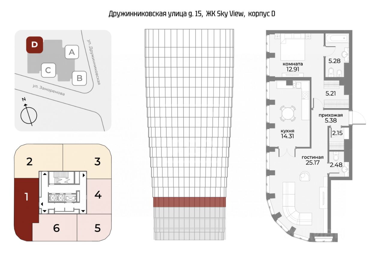В комплексе реализована многоуровневая система безопасности: круглосуточная охрана, контроль доступа, видеонаблюдение, консьерж-сервис, подземный паркинг.