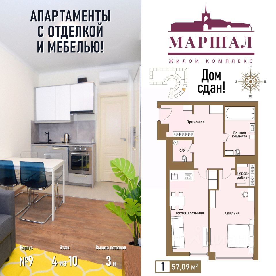 Продаются 1-комнатные апартаменты в сданном доме (Маршала Рыбалко, 2К9), срок сдачи: IV-кв. 2011, общей площадью 57.09 кв.м., на 4 этаже. С чистовой отделкой и мебелью.