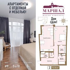 Продаются 2-комнатные апартаменты в сданном доме (Маршала Рыбалко, 2К9), срок сдачи: IV-кв. 2011, общей площадью 72.56 кв.м., на 5 этаже. С чистовой отделкой и мебелью.