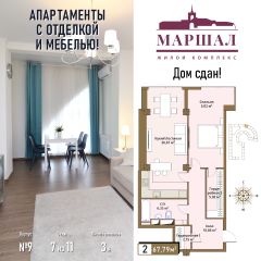 Продаются 2-комнатные апартаменты в сданном доме (Маршала Рыбалко, 2К9), срок сдачи: IV-кв. 2011, общей площадью 67.79 кв.м., на 7 этаже. С чистовой отделкой и мебелью.