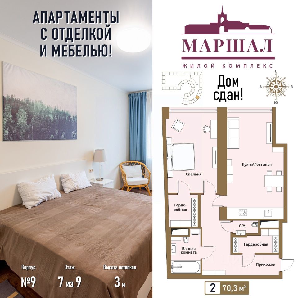 Продаются 2-комнатные апартаменты в сданном доме (Маршала Рыбалко, 2К9), срок сдачи: IV-кв. 2011, общей площадью 70.3 кв.м., на 7 этаже. С чистовой отделкой и мебелью.