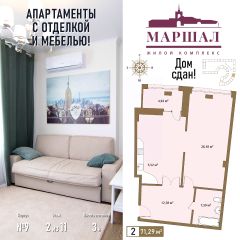 Продаются 2-комнатные апартаменты в сданном доме (Маршала Рыбалко, 2К9), срок сдачи: IV-кв. 2011, общей площадью 71.29 кв.м., на 2 этаже. С чистовой отделкой и мебелью.
