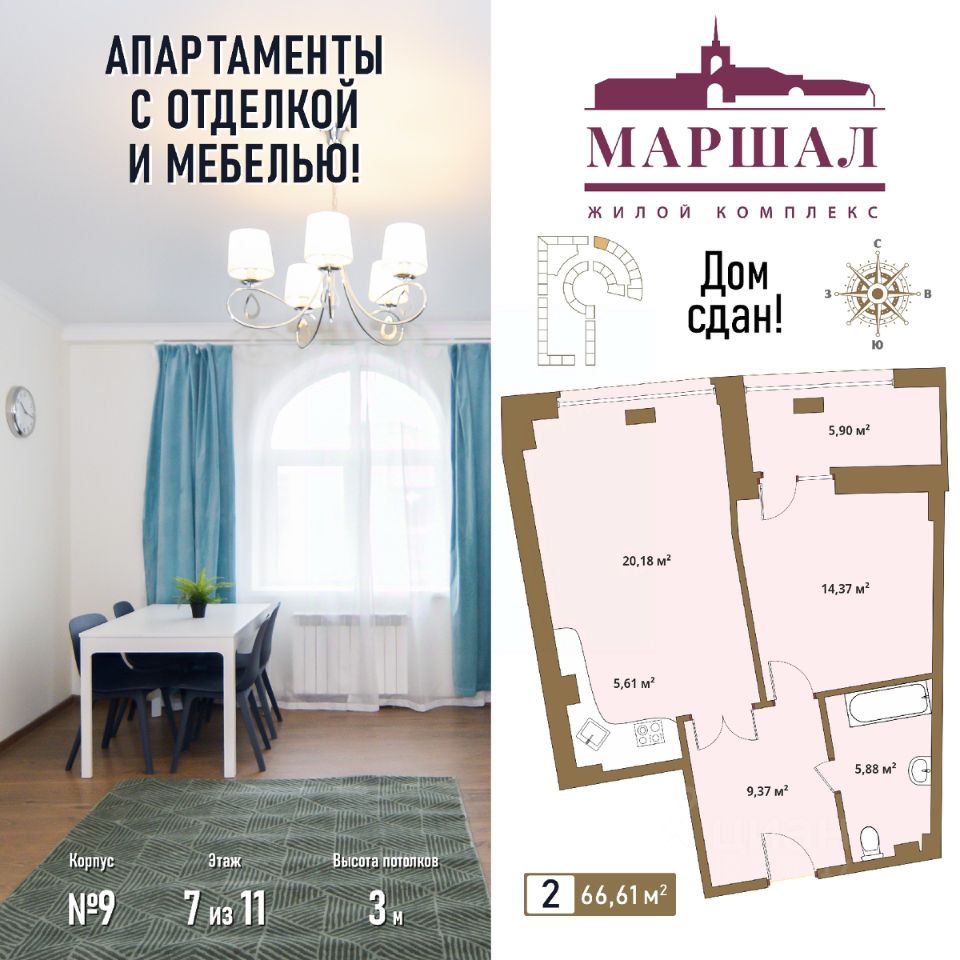 Разный формат недвижимости в составе МФК "Маршал" и развитая инфраструктура воплощают концепцию Live & Work ("Живи и работай"). В комплекс, помимо жилых помещений, входит деловой центр "Маршал" класса В +, где можно купить или взять в аренду офисное помещение. Таким образом, купив апартаменты в МФК "Маршал", вам не придется уезжать далеко, чтобы поработать в офисе.