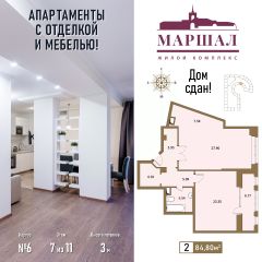 Продаются 2-комнатные апартаменты в сданном доме (Маршала Рыбалко, 2К6), срок сдачи: IV-кв. 2011, общей площадью 84.8 кв.м., на 8 этаже. С чистовой отделкой и мебелью.