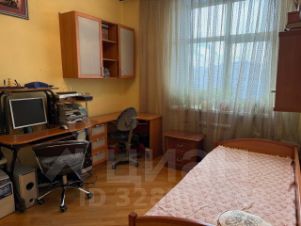 3 комната — Жилая, может выполнять роль детской или кабинета — 11,9 кв. м. Уютная комната с кроватью, рабочим столом и полками. Окна выходят во дворик.
